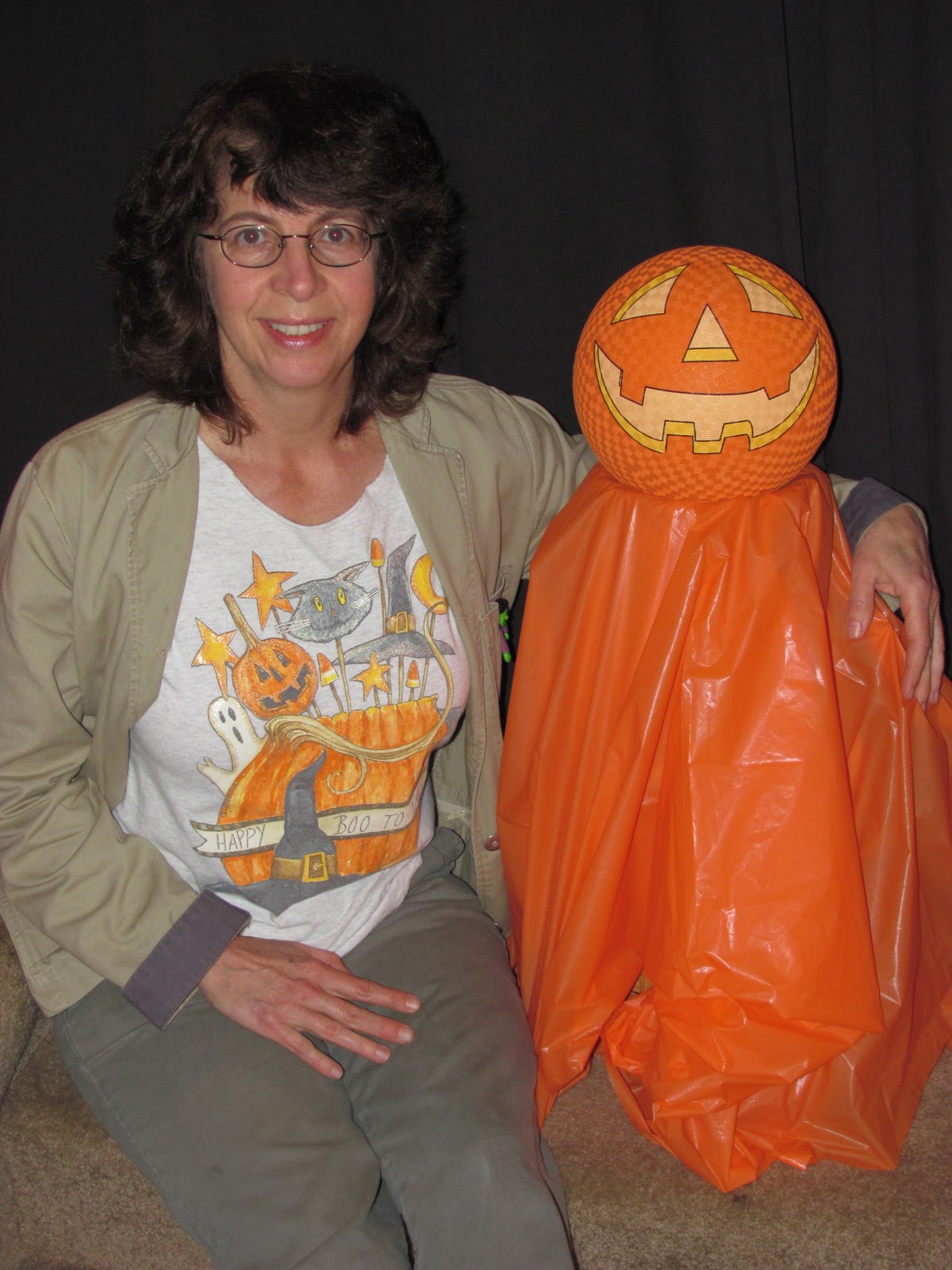 And here's the shirt-of-the-day shot, along with my li'l pumpkin-head pal: